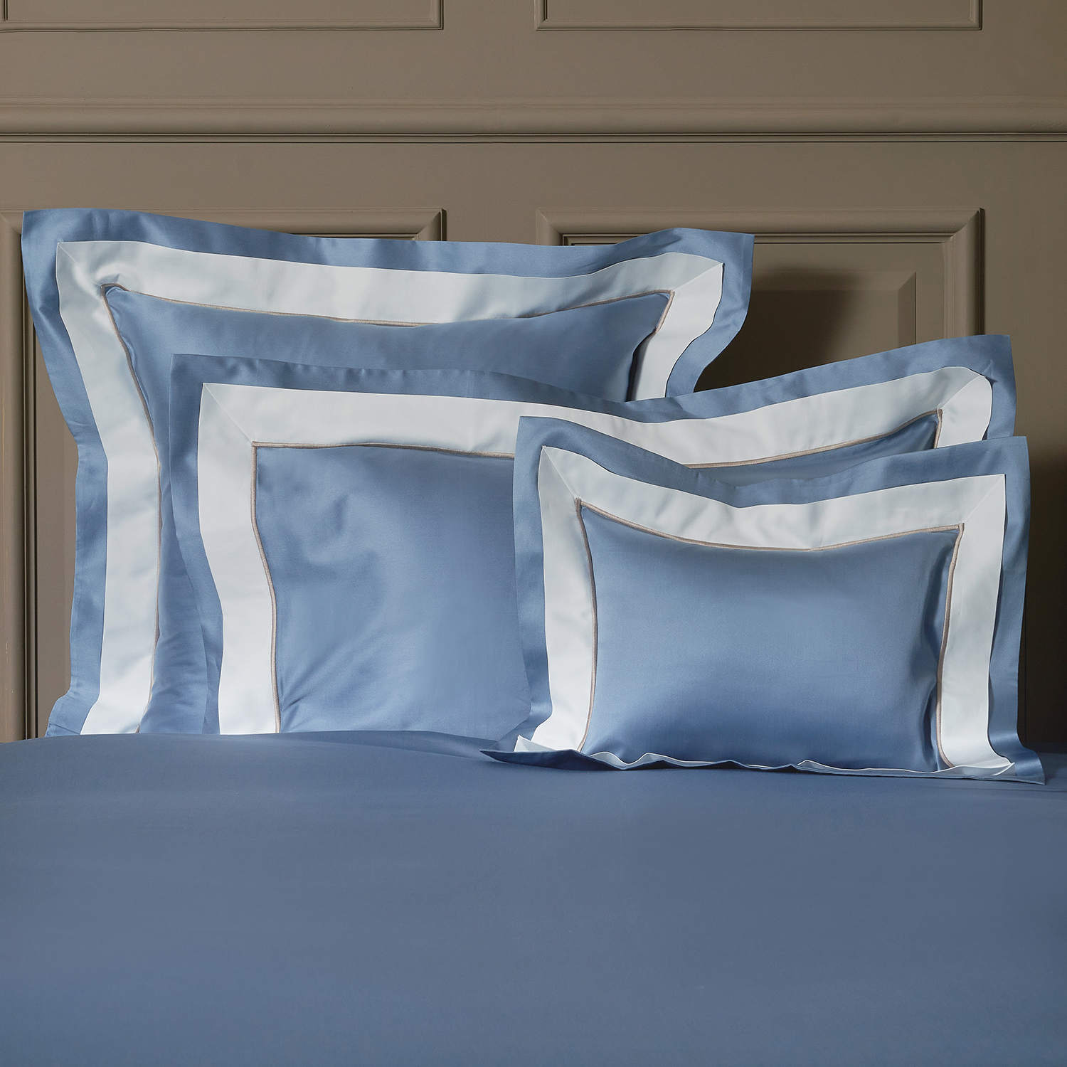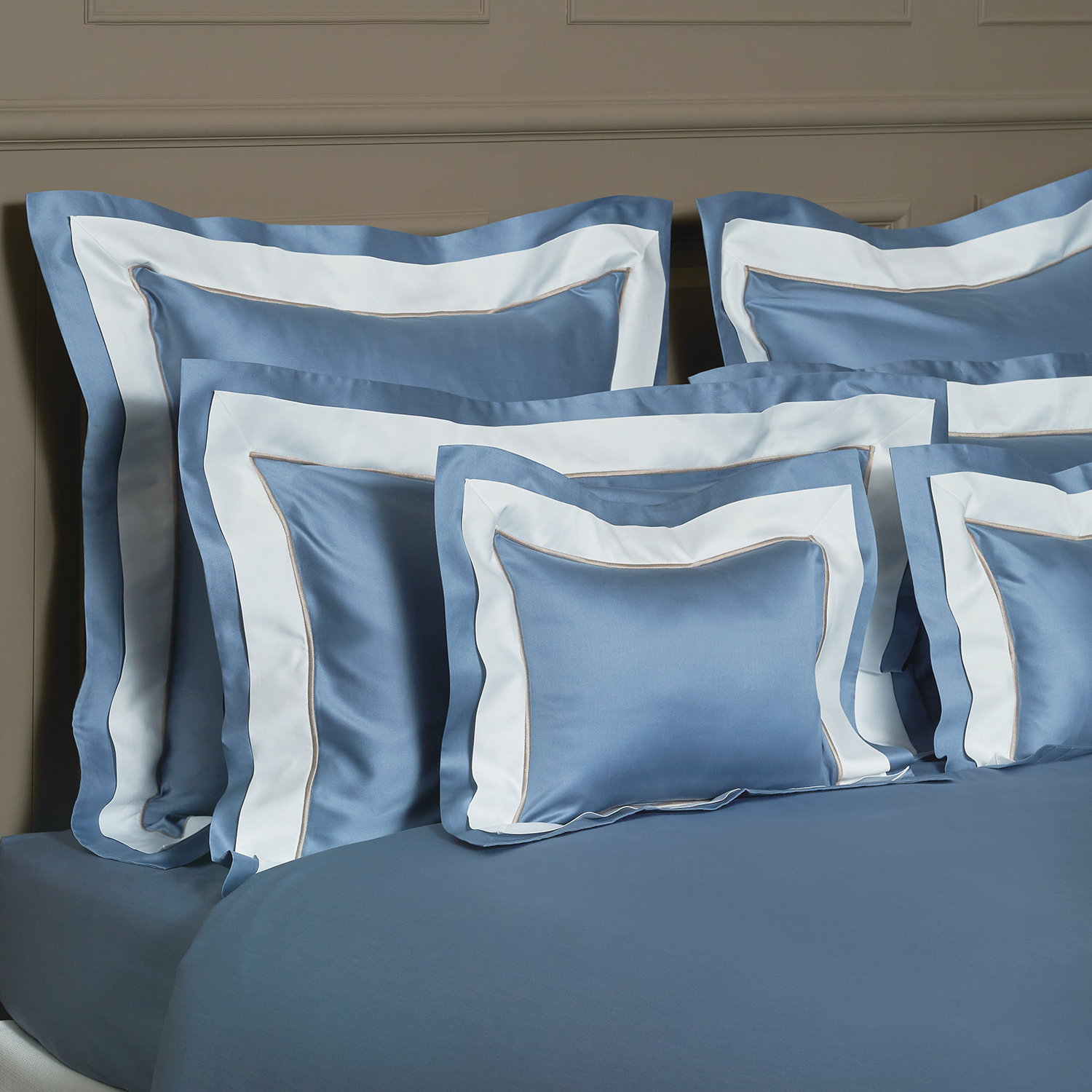 The STELLINA collection perfectly demonstrates the sumptuous elegance of our ANGEL SKIN® GIZA Egyptian 600 thread count cotton, with a sateen finish radiating a subdued luminescence. The sophistication is elevated with contrasting colors on the French flange and the sateen stitch embroidery to bring a contemporary feel to this expression of true luxury.
