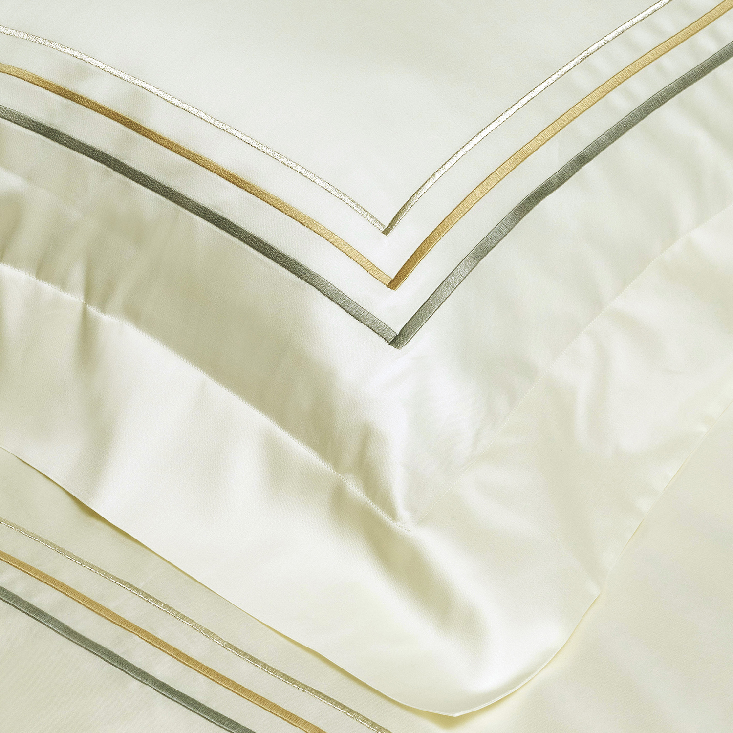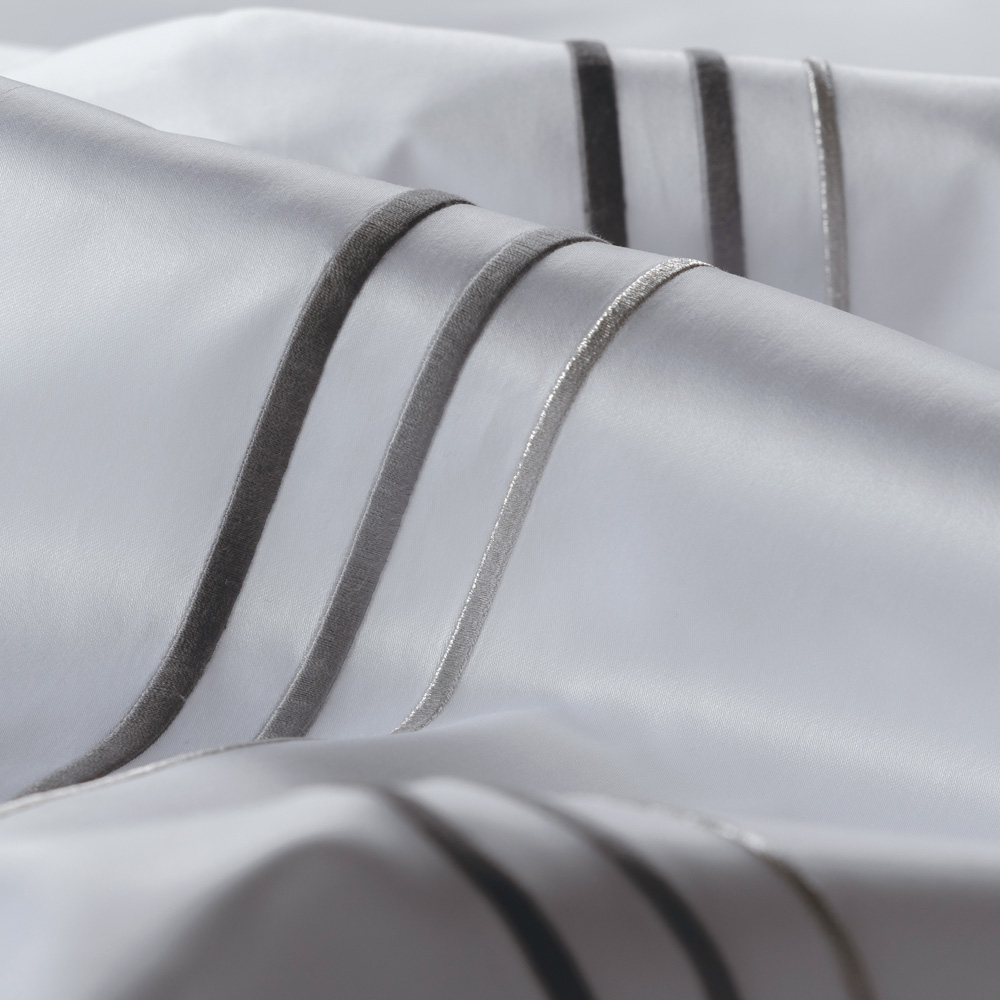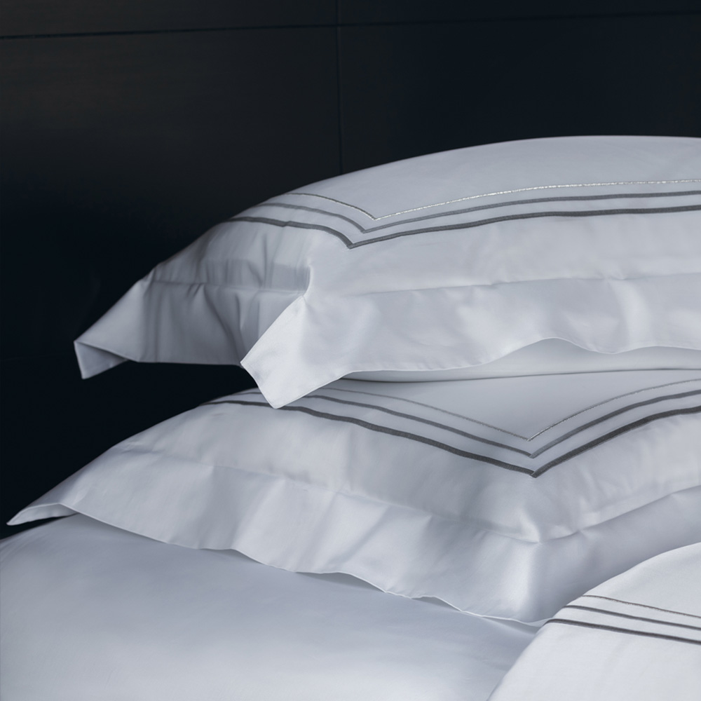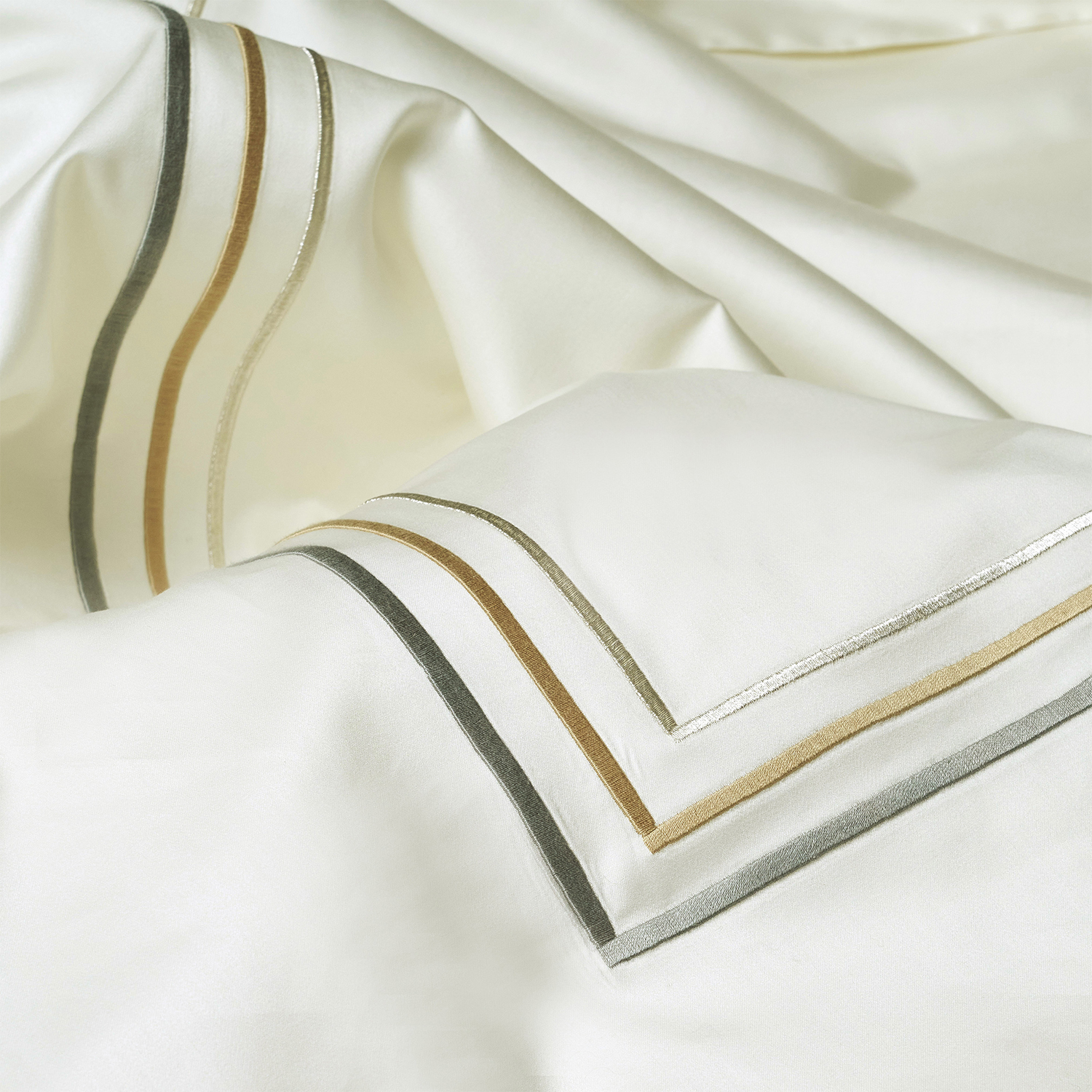 The LUCIANO collection features a triple-cord embroidered linear design, where three carefully considered colors in gentle metallic hues, frame a solid colour base. This minimalistic and contemporary design is coupled with our ANGEL SKIN® 600 thread count GIZA Egyptian cotton, creating a sophisticated and modern look.