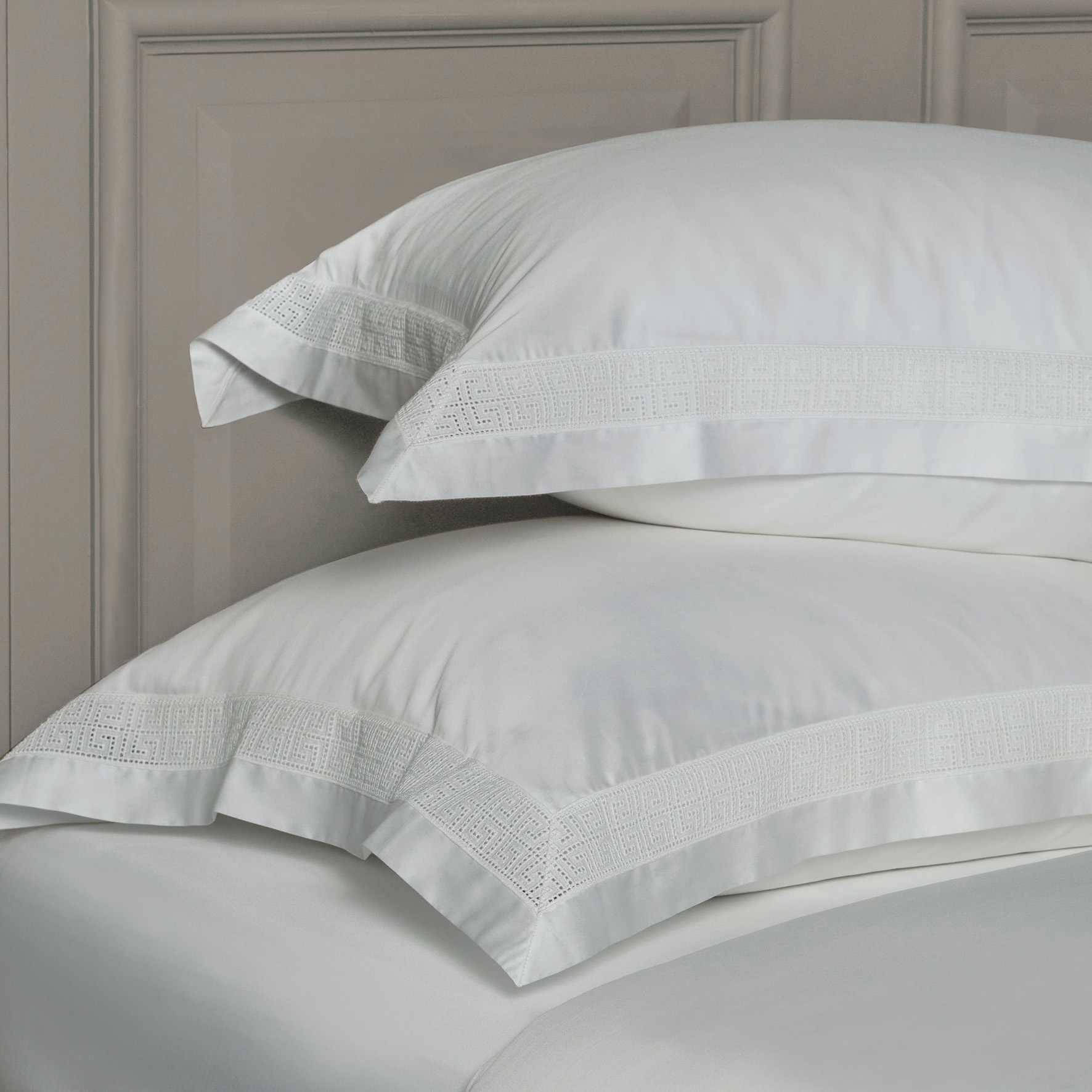 The design is a contemporary interpretation of antique hand-embroidered eyelet workmanship and is coupled with cotton sateen, blending craftsmanship with simplicity our GIZA Egyptian cotton sateen.