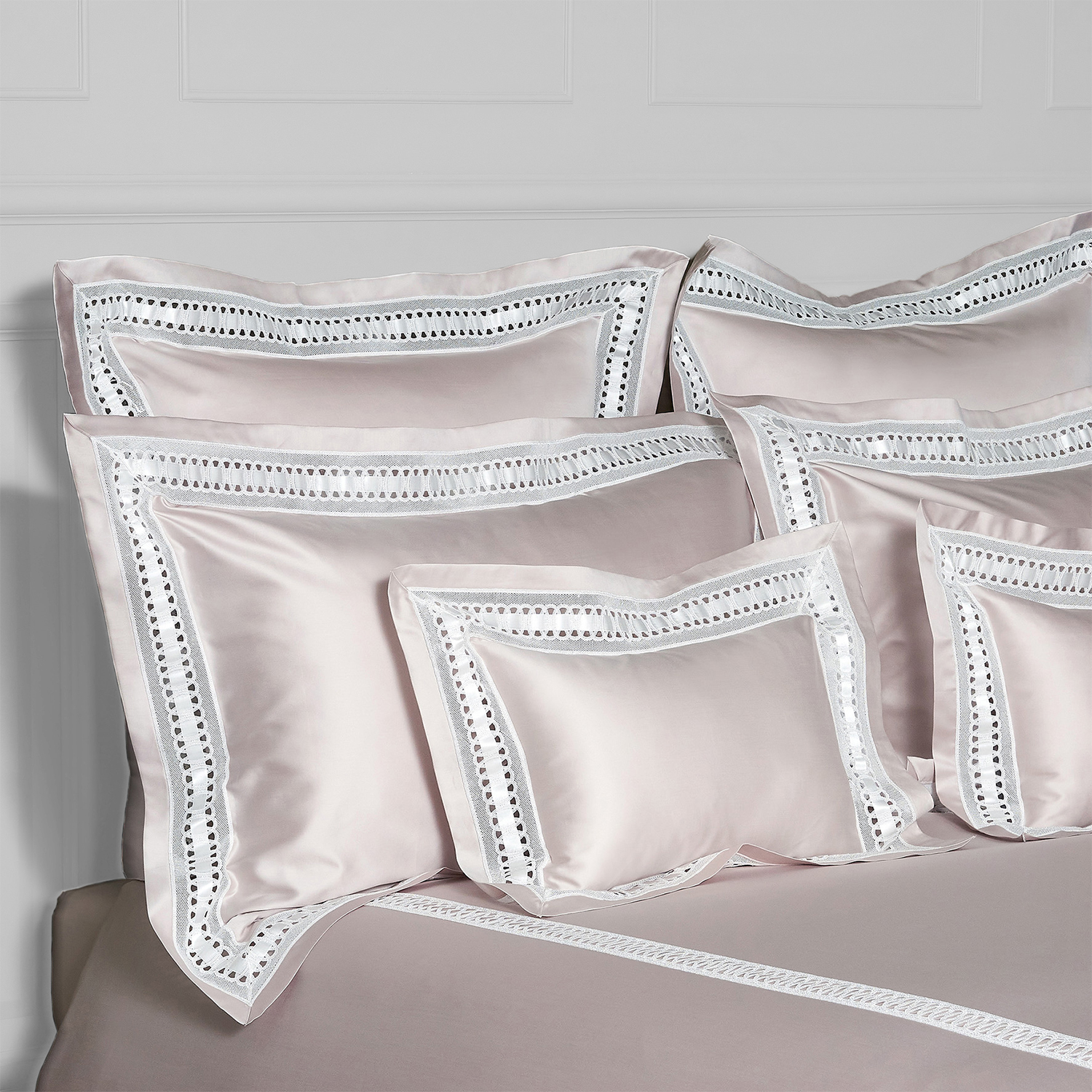 The DANZE collection brings sumptuous handmade lace into modern life. The exquisite Broderie anglaise lace is inlaid with a satin ribbon, a contemporary interpretation of antique lace trims of 19th century sleepwear. The intricate craftwork of the Italian lace is coupled with our ANGEL SKIN® 600 thread count GIZA Egyptian cotton sateen, creating a graceful and elegant addition to any decor.