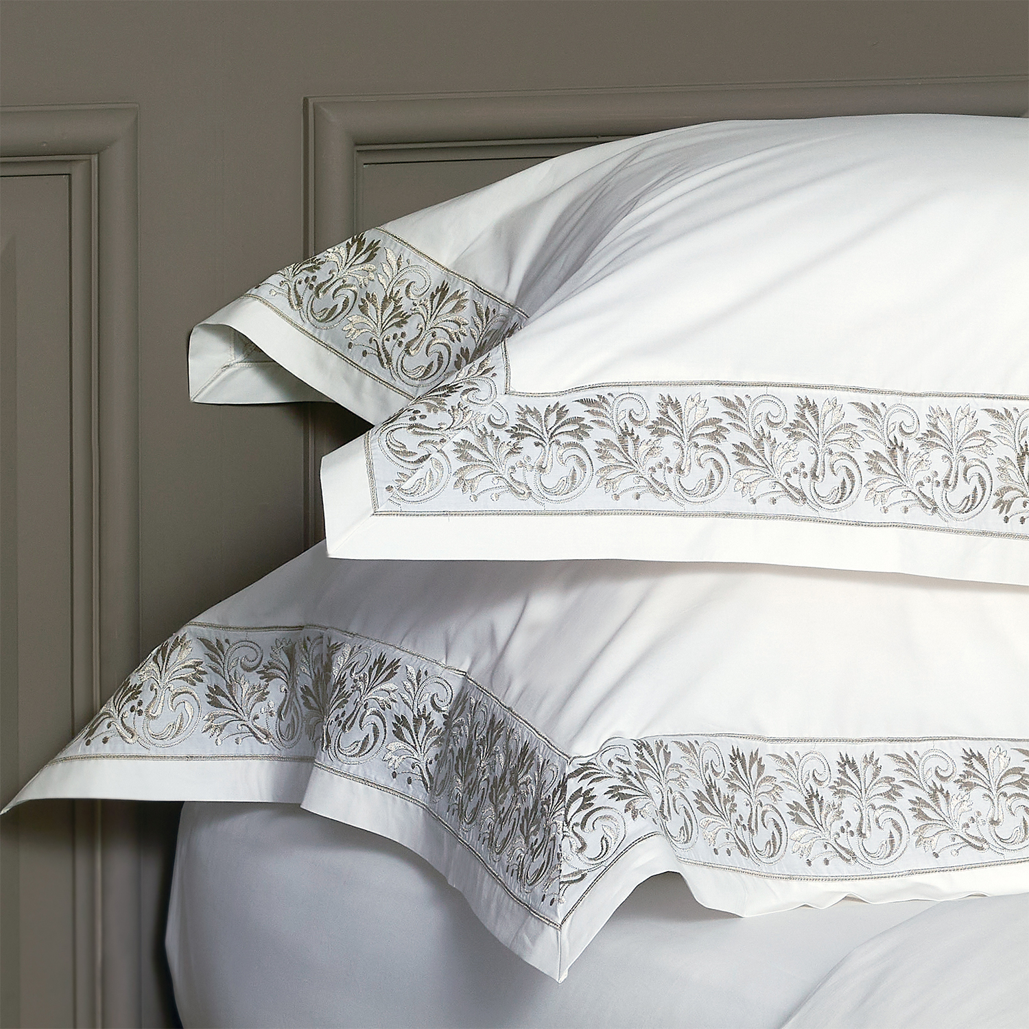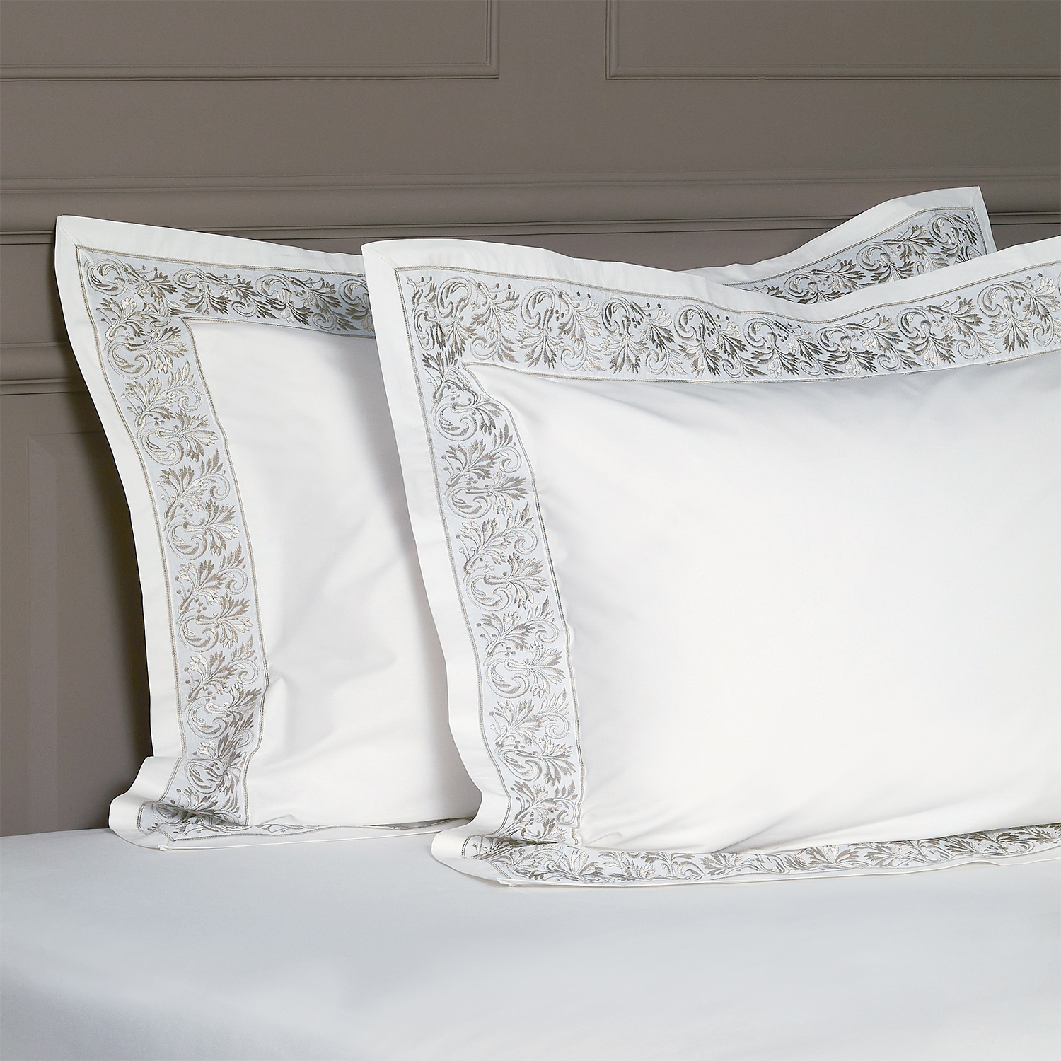 The EUTERPE collection features an exquisite lace decoration inspired by the “Rococo” artistic movement. Our exclusive lace design is embroidered onto a fine muslin base. The lace is then paired with our ANGEL SKIN®, GIZA Egyptian cotton percale to create a durable bed linen which is exceptionally breathable and soft to the touch.